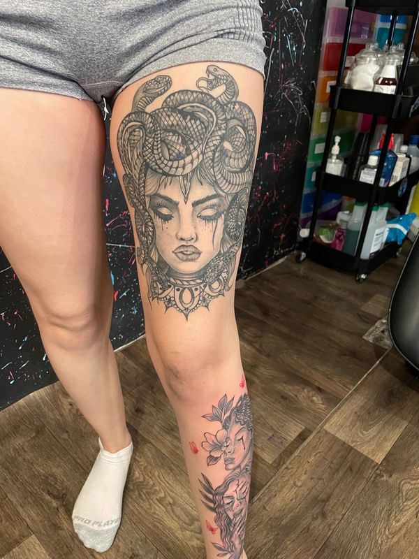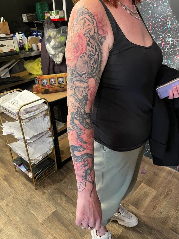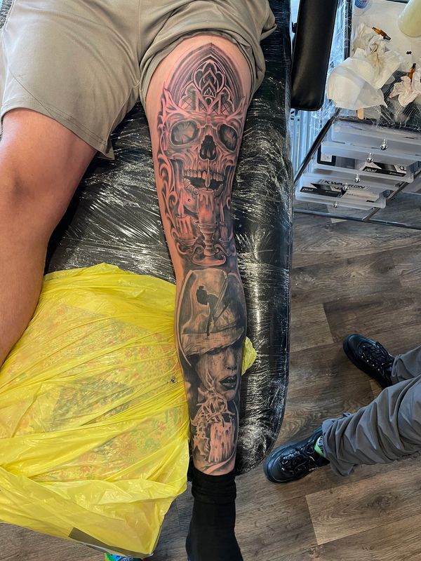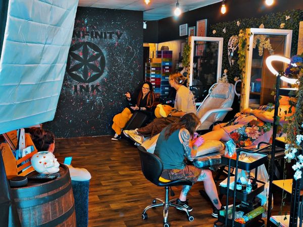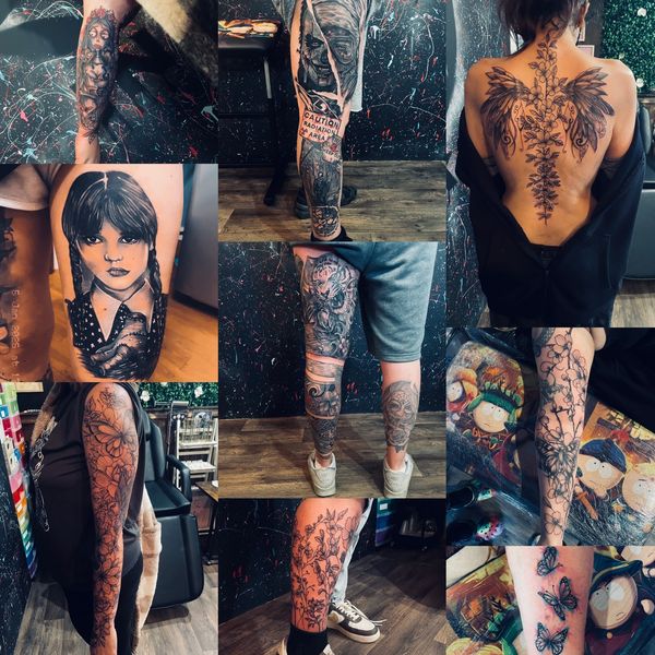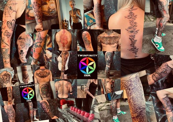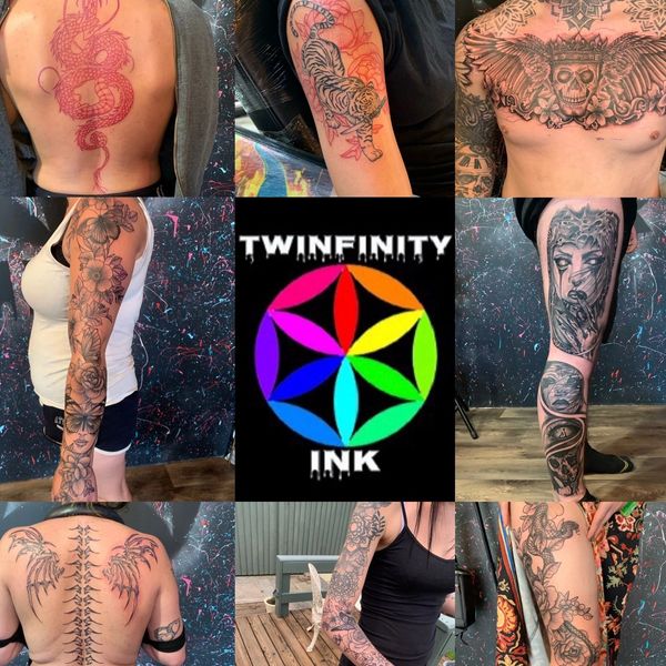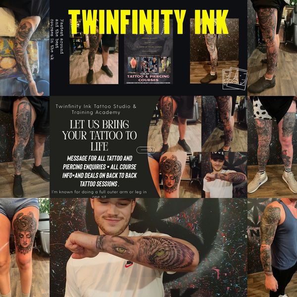 Above 👆 owner Ashley Williams At Twinfinity Ink studio , we specialize in creating unique and personalized tattoos that showcase our clients' individuality. We also have the ability to create a full side leg or arm piece in one to 2 sessions in many styles being the quickest around. Our team of experienced artists work closely with each client to ensure that their vision is brought to life in a beautiful and lasting way. We have 4 different artist for all your styles and we always have space for more tattooists Who would like to join. Ashley is the owner of Twinfinity and head tattooist 1st generation self taught, my family do have 80 years history but that’s there history I believe in creating my own for my family history. Im also one of the quickest around and we put the clients needs and wants before our own 💉🙏🖤 we are also an award 🏆 winning studio best tattoos studio 2024